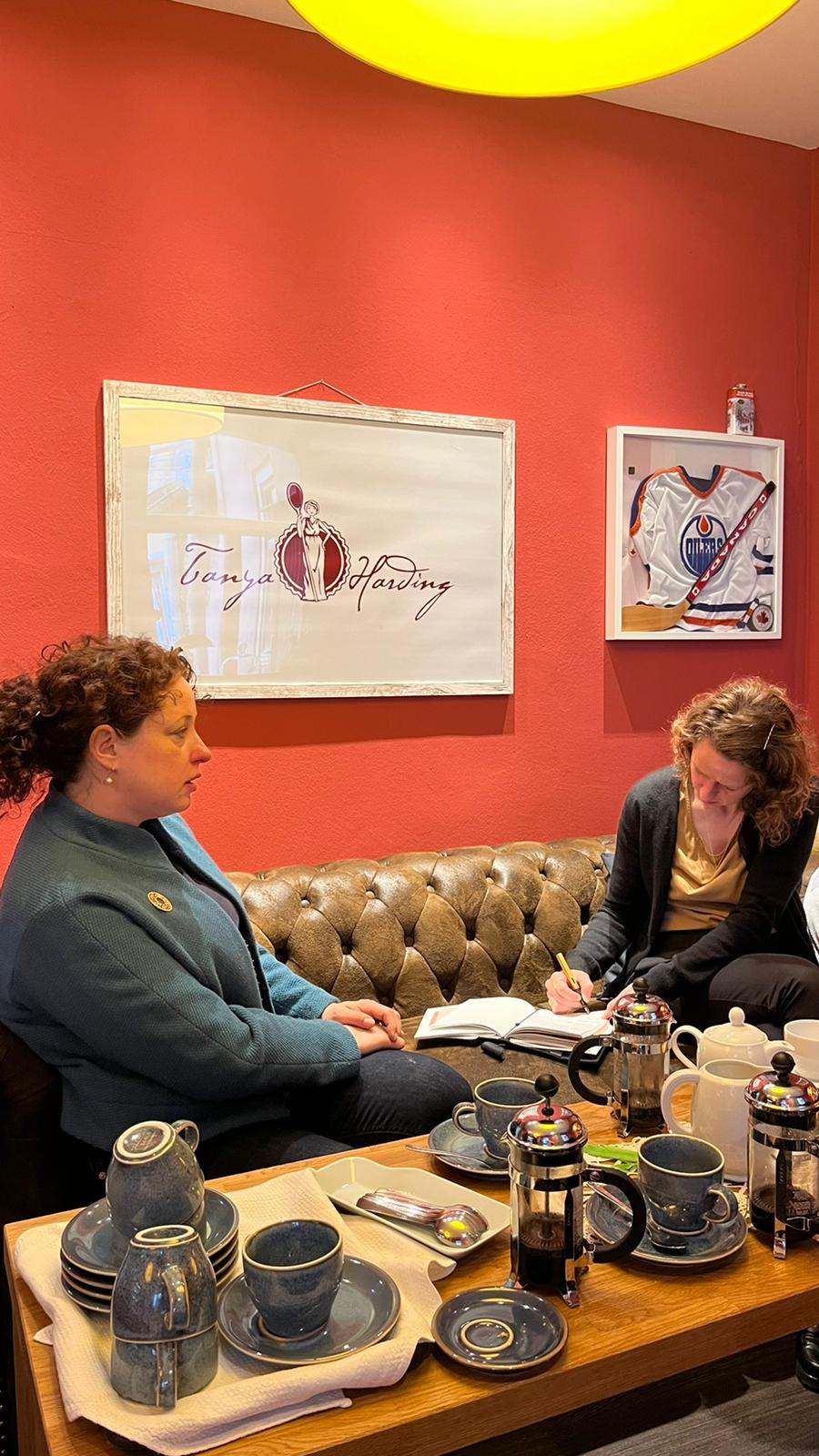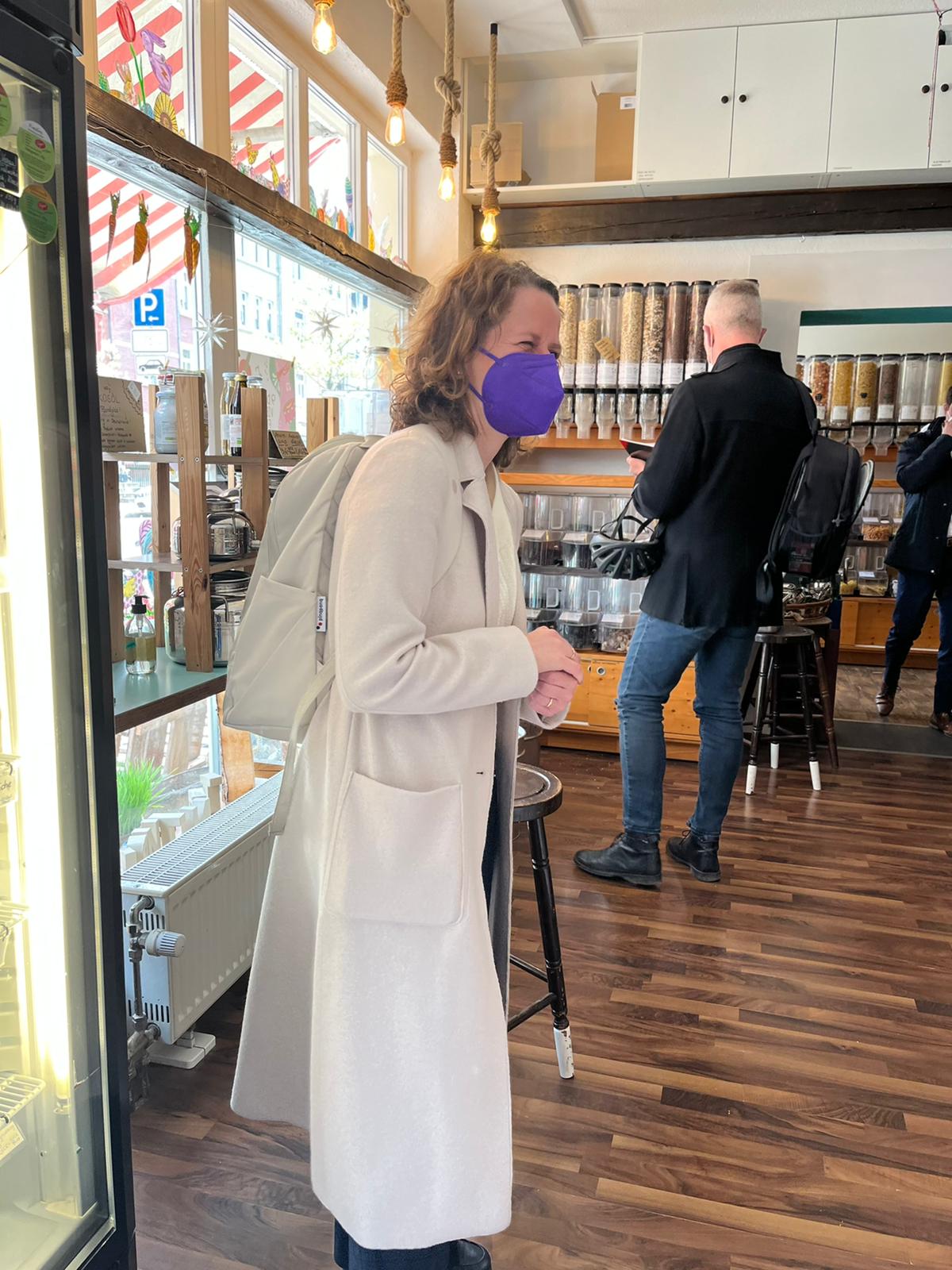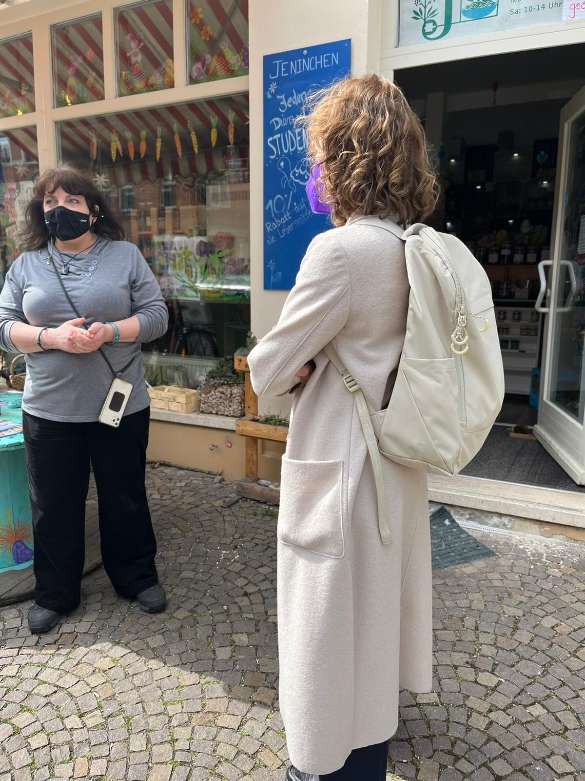 Der zweite Tag meiner Tour führte mich nach Weimar. Dort habe ich die Kanadierin Tanya Harding vom Maple Bistro getroffen. Sie hat mir davon berichtet, dass es als erfahrene Gründerin, wie sie eine ist, nur wenige Programme gibt, die noch hilfreiche Unterstützung und Beratung liefern können. Geradefür Frauen sind Netzwerkstrukturen wichtig, das wurde in unserem Gespräch noch einmal deutlich. Mentoringprogramme gebe es nur gegen Honorar, das sei bei männlich geführten Unternehmen anders. Außerdem erörterte sie mir, dass es für Gründerinnen in Thüringen auch Standortprobleme gibt, die dringend angegangen werden müssen. Und natürlich leidet die Gastrobranche nach wie vor unter der Pandemie. Das ist auch im Maple Bistro spürbar.