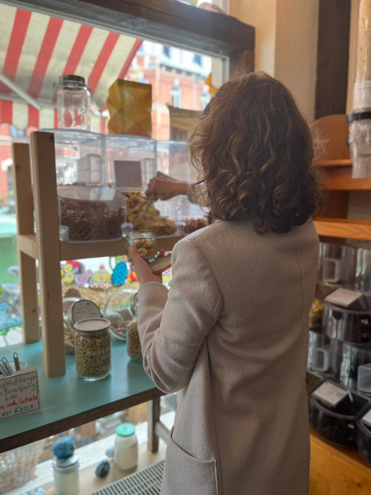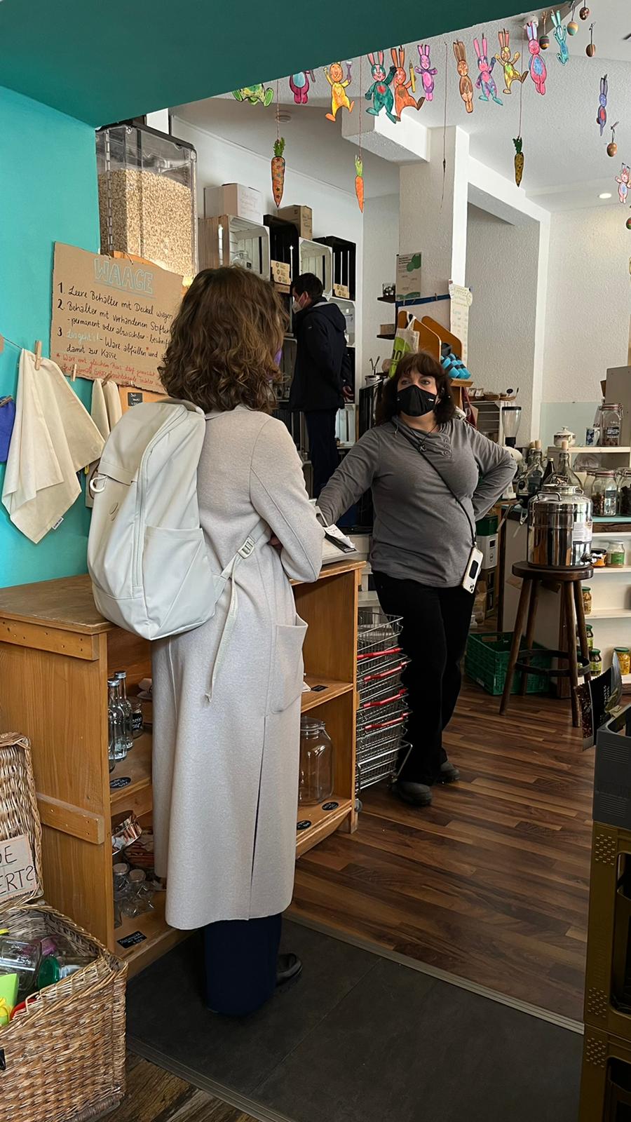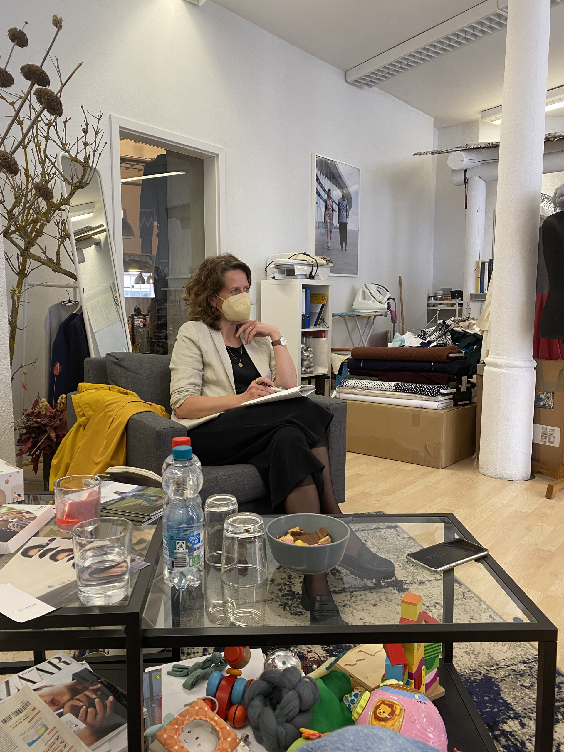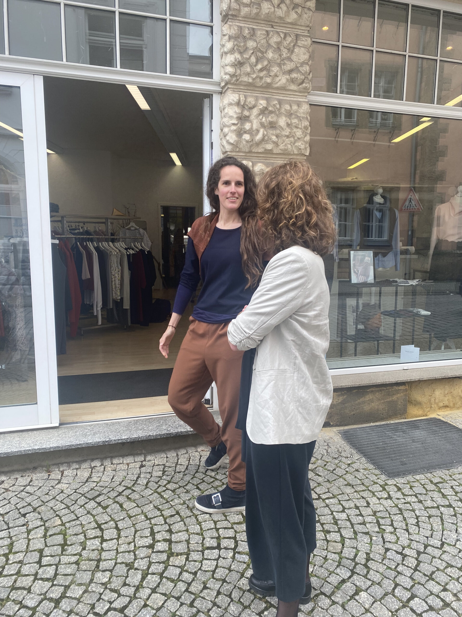 Bei Vera Niedermeyer und ihrem Laden bin ich Stammgast, logisch also, dass ich im Rahmen meiner Unternehmerinnentour auch bei ihr vorbeigeschaut habe. Das Moquadrat hat fair produzierte Bio-Bekleidung für Kinder, Frauen und Männer. Wie auch für die anderen Frauen, die ich im Rahmen meiner Tour bereits besucht habe, war es auch für Vera kein Gründungsweg frei von Hürden. Da war zunächst das Abenteuer Selbstständigkeit mit kleinen Kindern und schwanger, auch deshalb hat Vera von Beginn an auf festangestellte Mirarbeiter:innen gesetzt. Eindrücklich hat sie mir ihren Weg beschrieben, der sie zunächst von ungünstiger Lage am Stadtrand bis zu ihrem Laden in der Erfurter Innenstadt brachte, von geliehenem Geld vom Schwager, von organischem Wachstum und der wirtschaftlichen und mentalen Talfahrt während der Pandemie. Auch Vera wünscht sich mehr angepasste Angebote für Frauen die gründen wollen, sie selbst habe im Vorfeld der Selbstständigkeit auch an Kursen teilgenommen, wirklich viel genützt haben sie im Nachgang betrachtet allerdings nicht. Vor allem bei dem Thema Selbstständigkeit und Familie wünscht sie sich mehr Austausch und bessere Beratungsangebote.